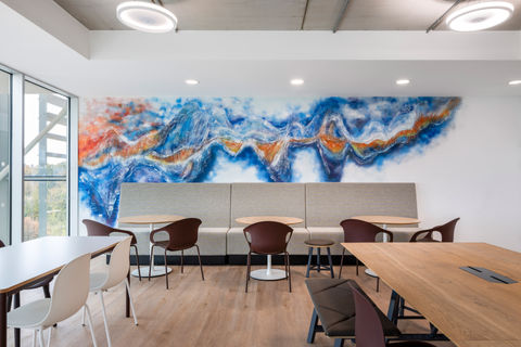 The refurbishment of the Hauser Forum building, was formed upon the success of the IdeaSpace initiative that R+S completed earlier this year (see case study projects) Ralph + Smith were invited to create an interior design scheme, drawing inspiration from the IdeaSpace aesthetic, working to a budget and while navigating the practical challenges of working within an occupied building.